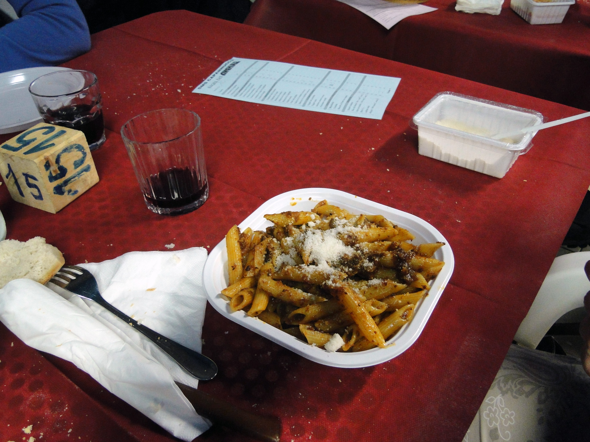 Cinghiale al sugo is a Tuscan traditional recipe too; Cinghiale alla Giuliano is a recipe born in Capannuccia during the festival itself some years ago so, while truly local, it hasn't an ancient history (both are wonderful, though).