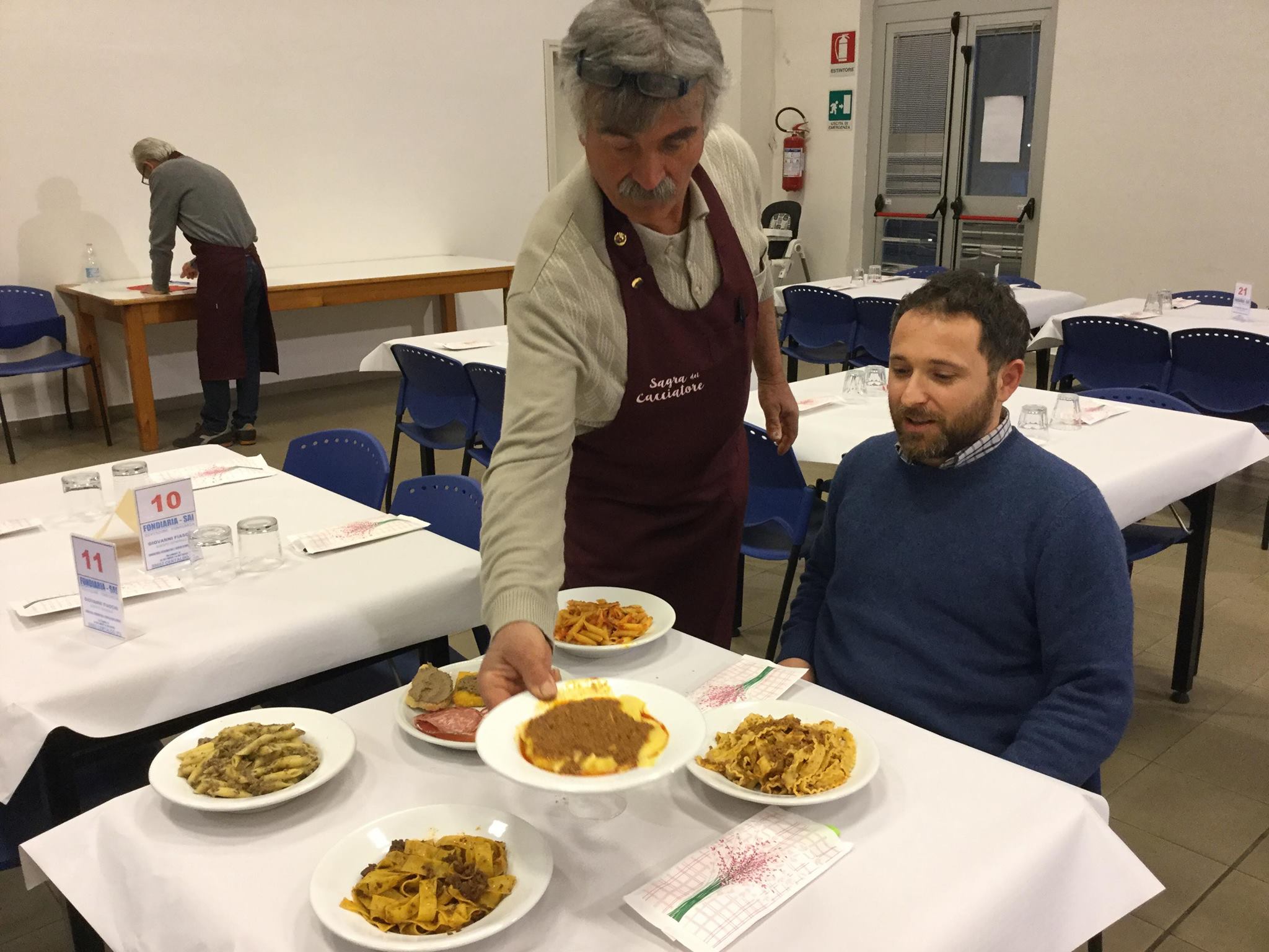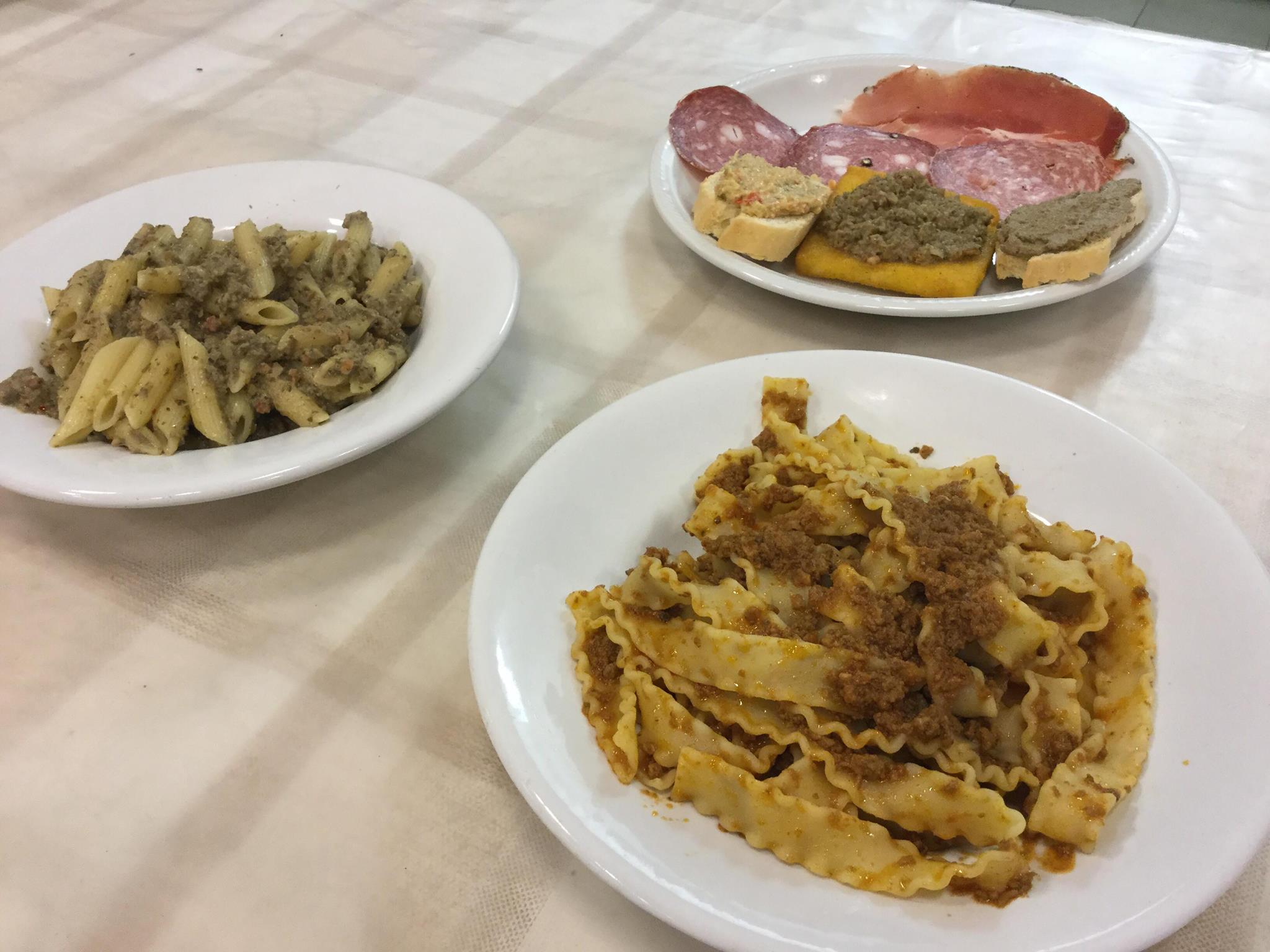 Organized and managed by true local hunters, which will serve you at the tables as volunteers, this "sagra del cacciatore" brings you inside a compendium of Tuscan game dishes - sort of. Sure there is the "king" of game sagras in Tuscany, the wild boar: classic recipes as pappardelle with wild boar sauce, always welcome; polenta with wild boar sauce, a great staple of ancient peasants; a rich wild boar stew, miraculously tender and perfect as well; a tasty wild boar filetto, a rarity and absolutely to suggest. But you'll face a big problem of choice here, because the menu offers two more than rare, unobtainable special dishes, with hare: once upon a time rather common, now way less hunted and cooked - so we are sure you won't miss either the tagliatelle pasta with hare sauce, and the hare stew! All these ancient recipes carefully prepared, and great as they can be.
